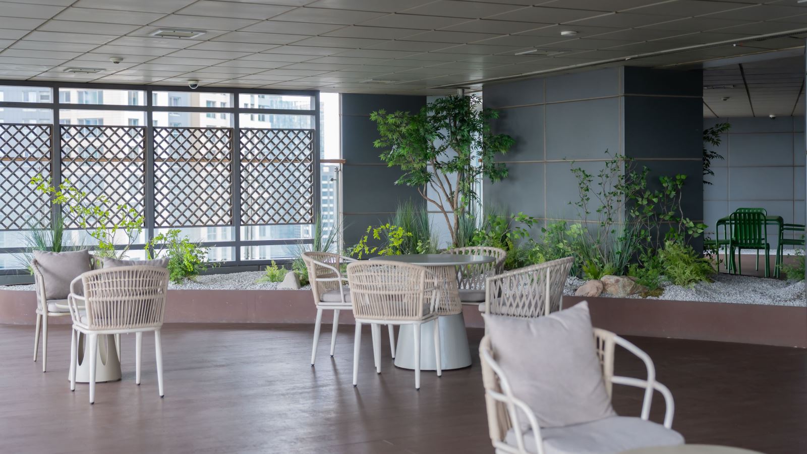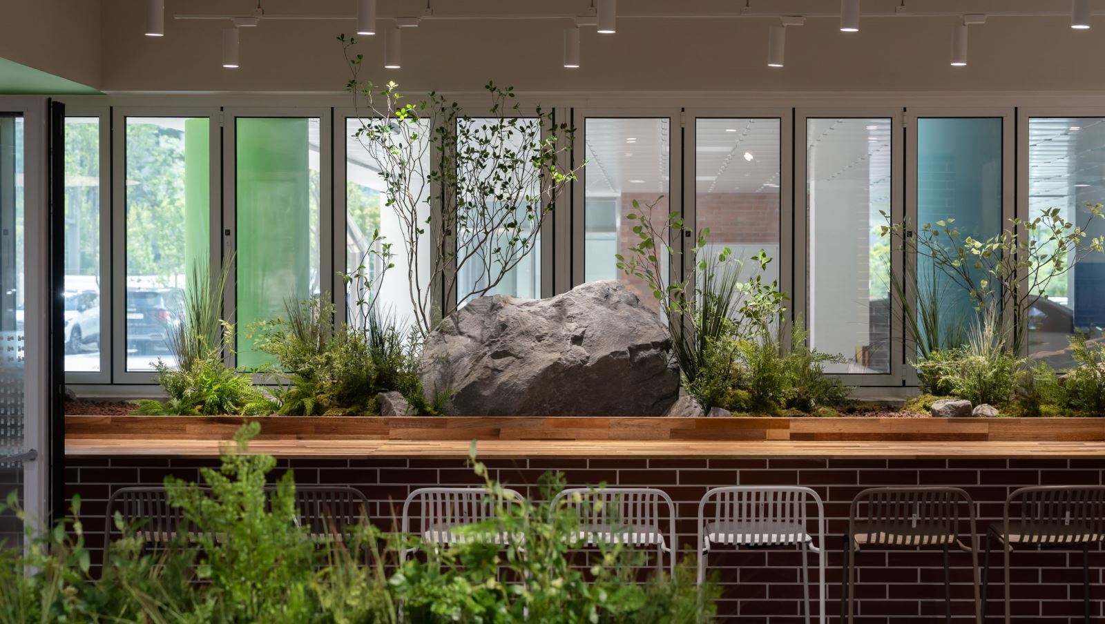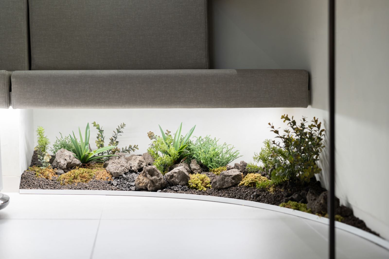 Tiểu cảnh nội thất có thể ứng dụng linh hoạt trong nhiều không gian như chân cầu thang, hành lang, khu vực chờ, phòng họp hoặc backdrop trang trí. Tùy theo diện tích và phong cách thiết kế, có thể lựa chọn bố cục tối giản hiện đại hoặc kết hợp thêm đá, sỏi và đèn chiếu sáng để tăng hiệu ứng sang trọng.